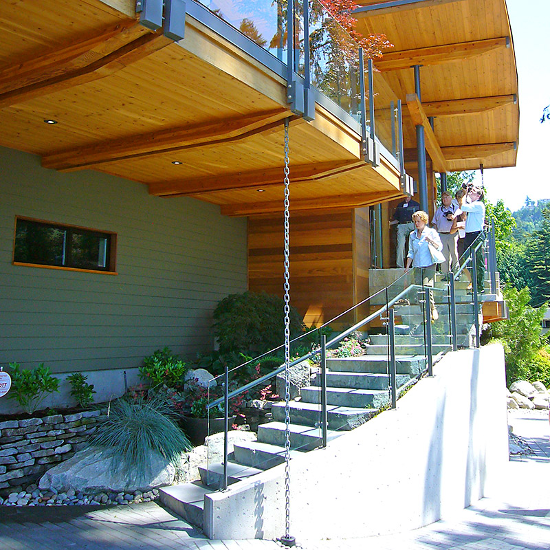 arthur erickson’s 1989 eppich residence II is constructed using custom-made structural steel and is a special highlight of the tour. other houses include the 1958 gerson residence by wolfgang gerson built on a steep treed slope on the west side of sentinel hill and the 1960 houg residence. although the original architect of the houg residence is unknown and the house fell into disrepair over the years, the current owner has taken on an extensive renovation to restore it. The most recently built home on the tour is located on a south-facing slope of an almost inaccessible granite cliff: the 2008 harbour house by bluesky architecture builds on the traditions of west coast modernism blending nature with carefully designed architecture in a rugged coastal setting. reception held in a spectacular home designed by battersby howat in 2005 that received western living’s ‘best in the west’ award.