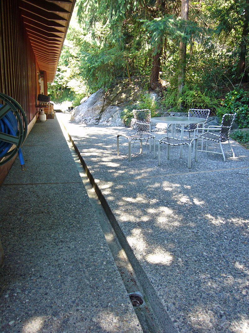 instead of gutters, a long trough-type drain was found to collect all the rainwater that comes off the roof during rainy season.
