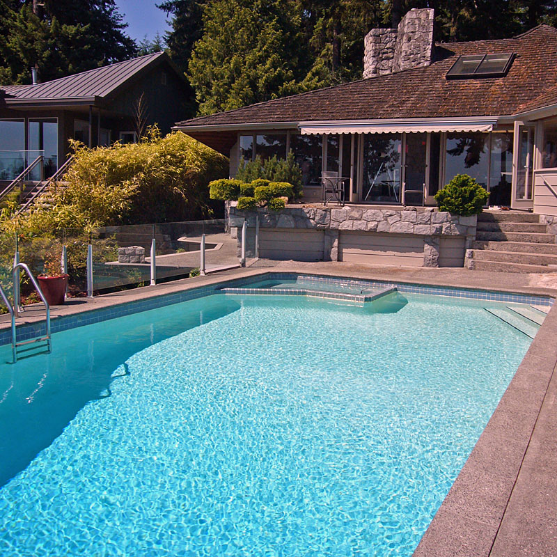 a pool that just begged to be swam in. the crazy thing about this pool was that it cantilevered right over the property line and has a drop of about 30 feet down beyond the railings. a house on the adjacent lot (not visible in this photo) was built right into the rock face.