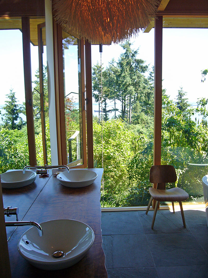 this ensuite bathroom was featured in the may 2010 month issue of western living magazine. the article is here for all who are interested. what a great concept in bathroom design having a nice soaker tub with a floor-to-ceiling window overlooking tress and the ocean beyond. of course having a great site doesn’t hurt either.