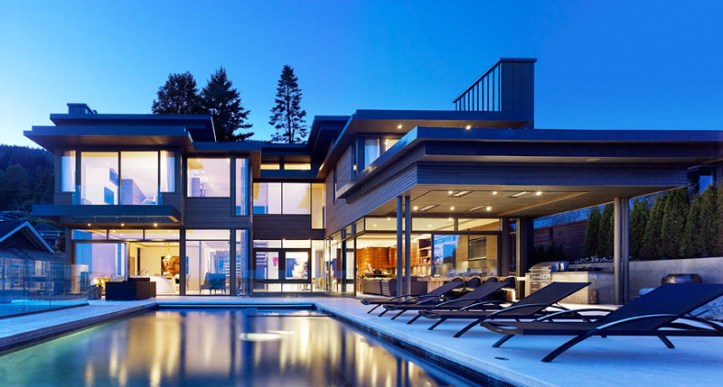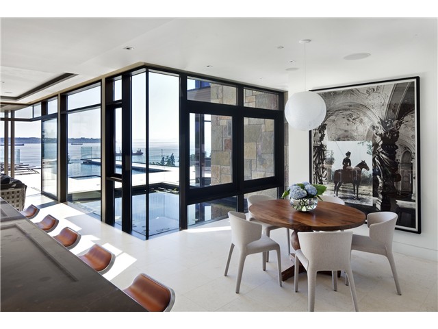 reflecting pond and dining nook on west wing of the house. generous glazing to enjoy endless views when cooking or chatting up guests.