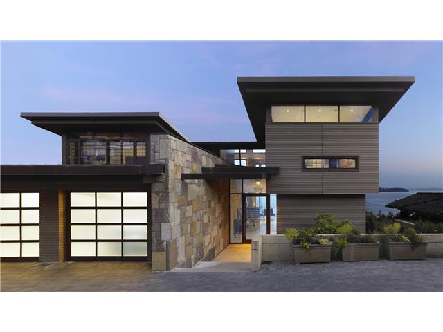 view from thompson crescent looking southwest. the roof lines are very dramatic with clerestory windows bringing northern light into all the upper floor rooms.