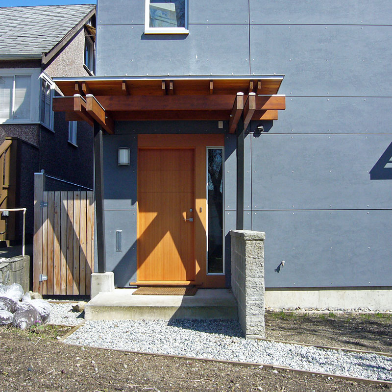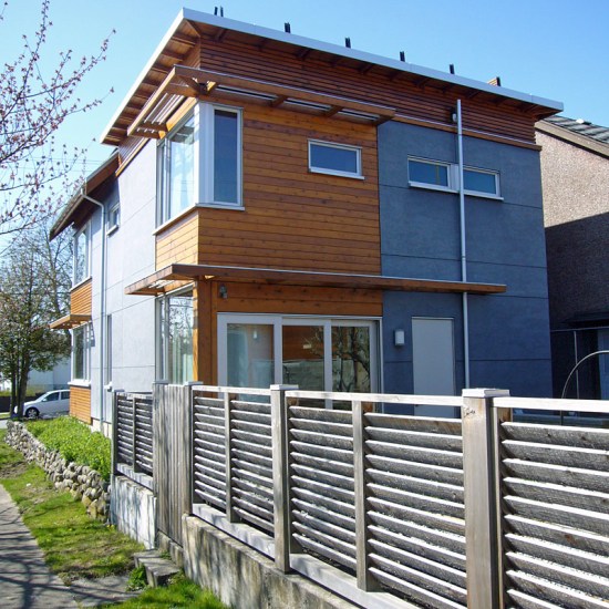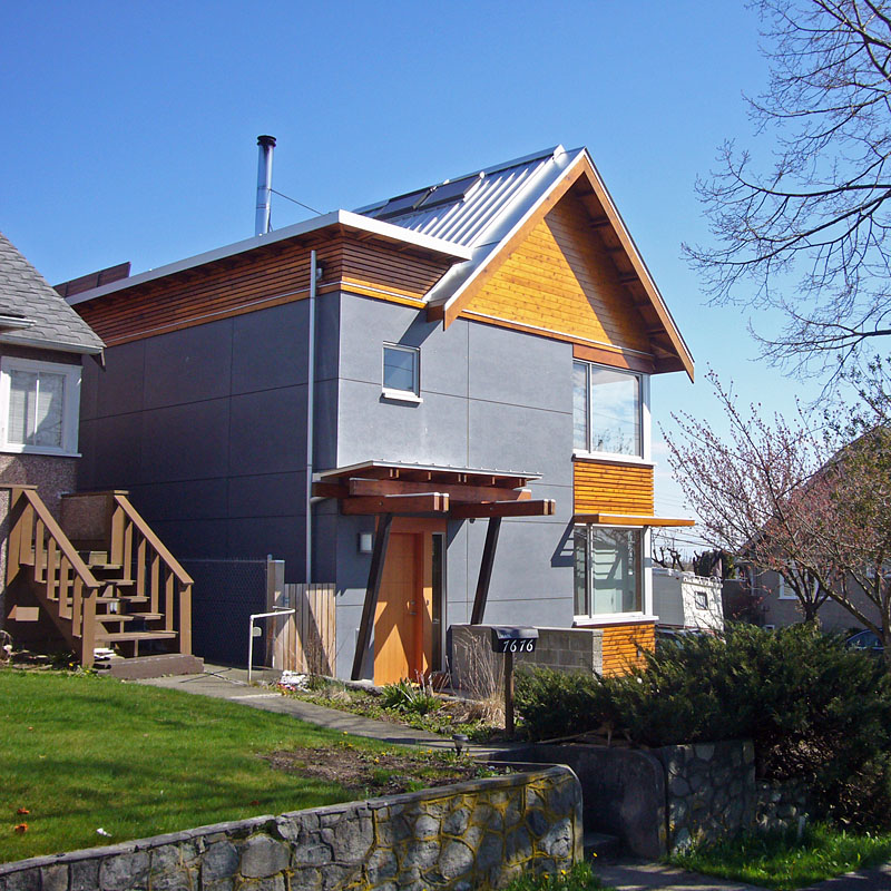 a recently completed house on the corner of ontario street and 61st avenue. the house is the home base of mnemosyne architecture.