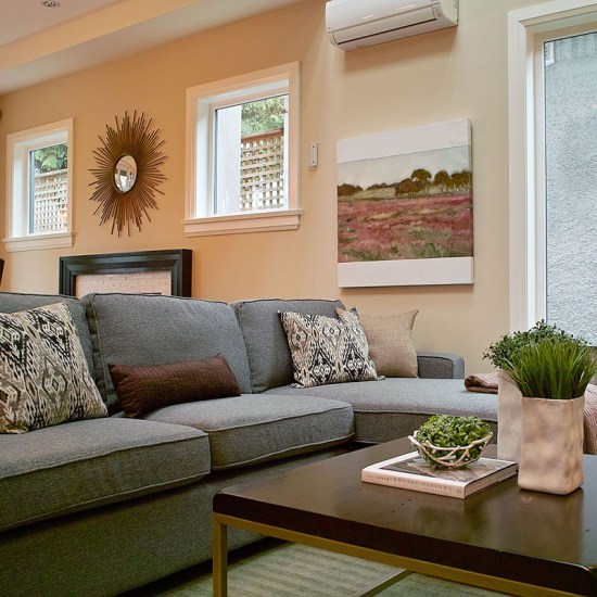 Concrete floors improve thermal mass, to reduce need for heating.