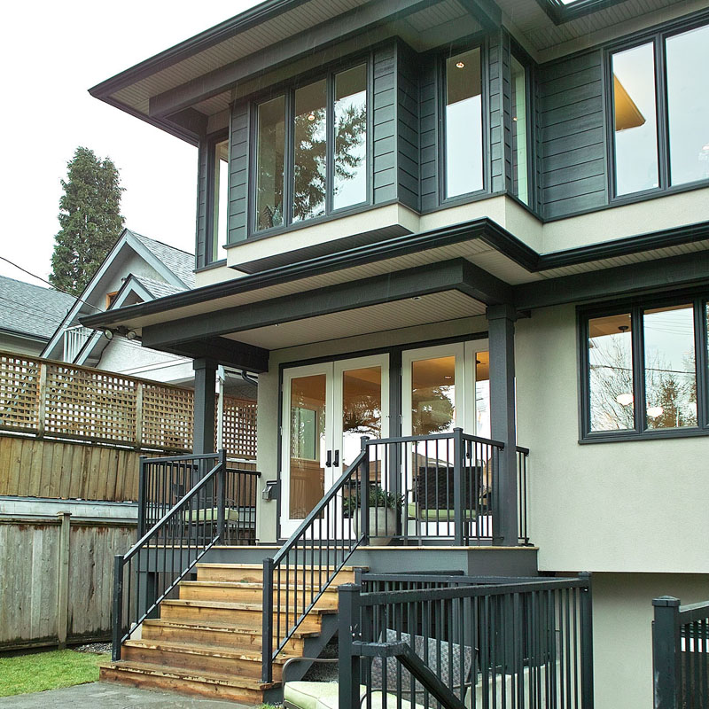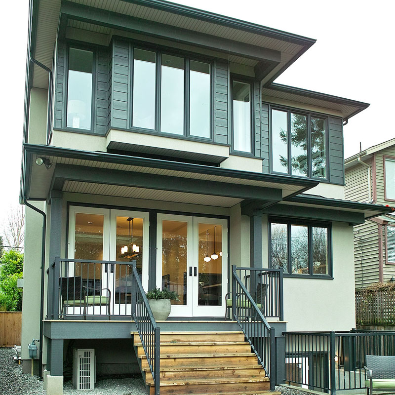 Located on a busy street in Kerrisdale neighborhood in Vancouver West, a standard 33x 122 lot, with single family homes in all adjacency. The prime goal of the new house was to explore open living concepts and flow within the house. The central double height living space is a key feature in the house. Vaulted ceiling and skylights bring in natural light throughout the year. Glazing was maximized along the south elevation for solar gains during the winter season. The roof overhangs were calculated to reduce solar gains during the summer months.