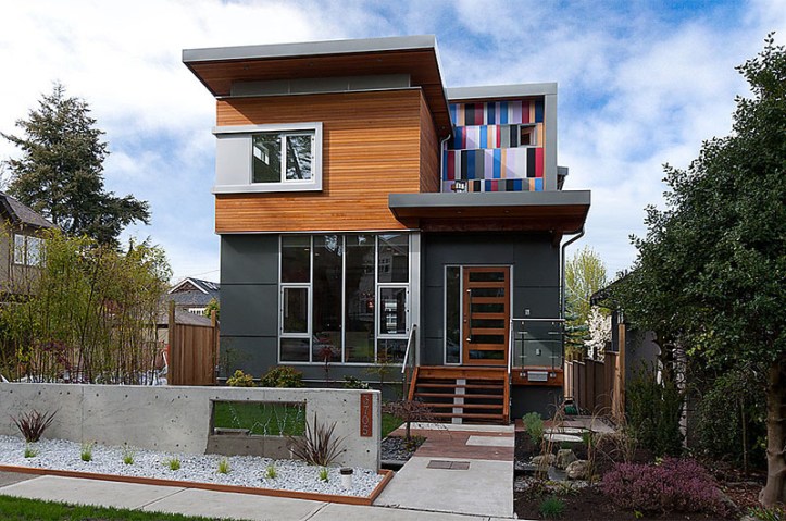 during the presentation of coast modern, this house was a quick feature in the film as the one house that stands out in the streetscape amongst other dull nondescript houses. the house is on the market (realtylink listing) and looking for a new owner who will enjoy living in a colourful (see funky upper floor mosaic) and modern space.