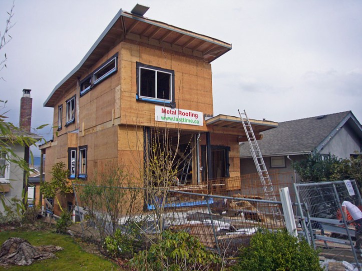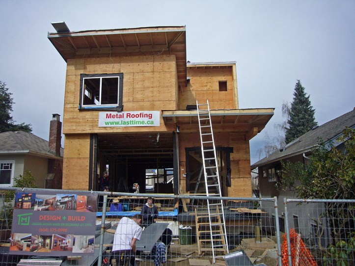 2 images of the house taken on march 26, 2011 during construction. the designer of the house is tmj design+build.
