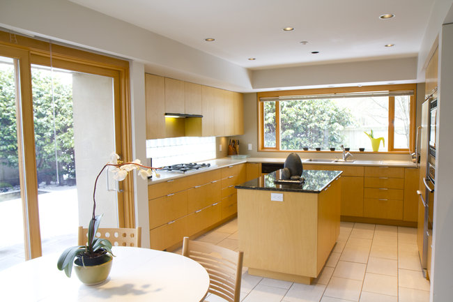 the kitchen is located at the south-west corner of the house and has access to a small patio off the entry at the south side.
