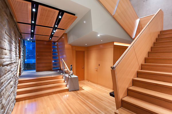interiors are well balanced with stone, wood, concrete and drywall finishes.
