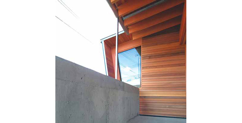 The questioning of distinctions between wall and roof has emerged as a major theme in leading-edge architecture this decade, but too often this means angled and curving sections worthy of the futuroid rooms in old Jetson’s cartoons, or more earthily, the Flintstones’ Cro-Magnon rock-warrens. Neither Space Age nor Stone Age, Battersby-Howat’s fluidity of angled alley wall into sloping roof into roofing used vertically on the river side is as smart as it is seductive.