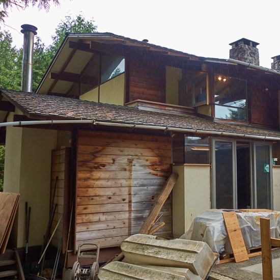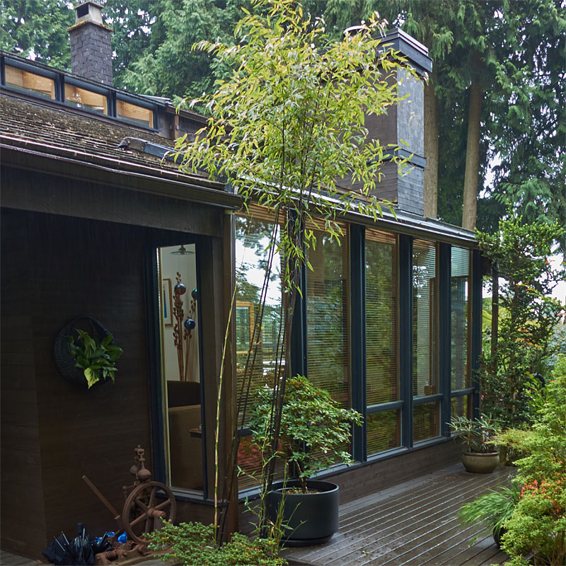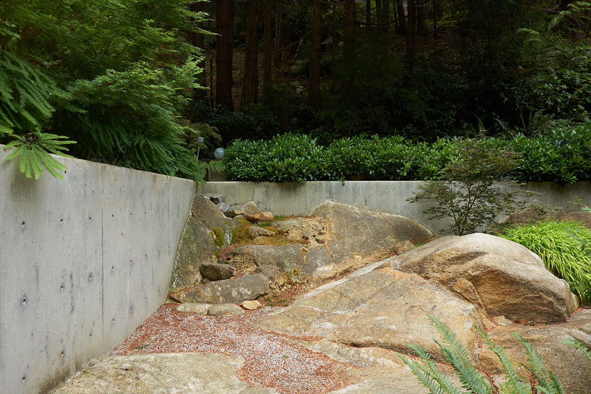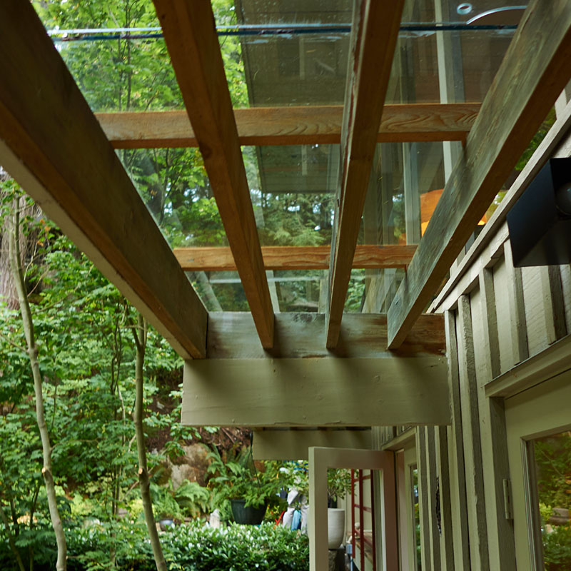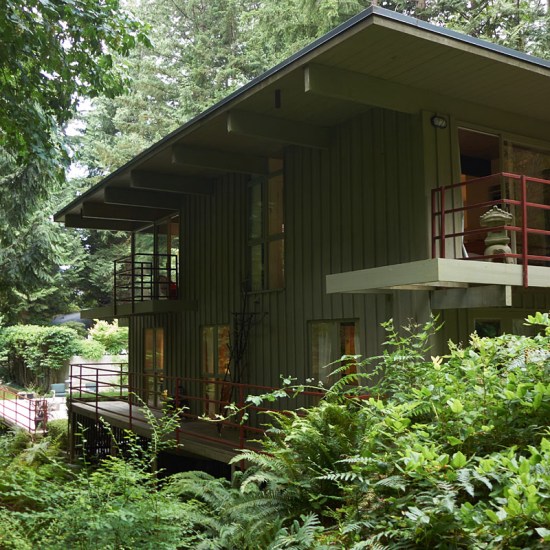The 1961 Ray Residence by Daniel Evan White is a tri-level, Japanese-inspired house built atop a rugged landscape of stepped and sloping bedrock, with exposed beams and thin soffits that give the impression that the top level of the house is floating above ground. The Ray House is significant for its sensitive and thoughtful integration with the natural environment, a hallmark of West Coast modern style. The house is currently under restoration by its new owners, Jan Pidhirny and Jim Ferguson, whose previous work includes restoration of the Carmichael Residence by Ron Thom.