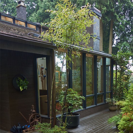 The 1967 Staples Residence, designed by Bruno Freschi of Erickson Massey Architects, offers both linear and functional design on its steeply sloping site, enhanced by the expressive interplay of wood and glass. Recent renovations by Freschi with Nick Milkovich Architects added 80 square metres of space to the original footprint, along with upgraded interior finishes and landscaping.