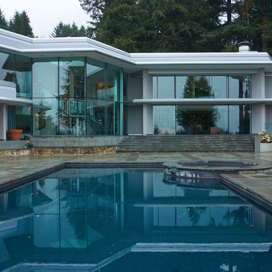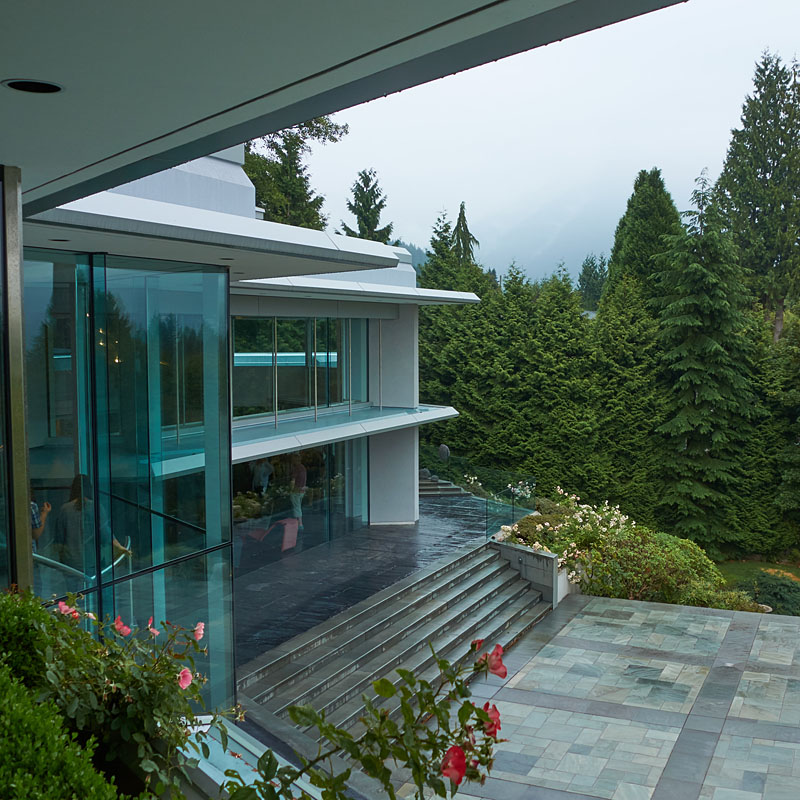 The Savics Residence was designed and built by Russell Hollingsworth on the foundation of a home designed and built in the 1950s by his father, Fred Hollingsworth. Renovations took over four years to complete and substantially altered the original structure to accommodate an expansive art collection. A large double-height atrium space connects to outdoor terraces for special functions, and features a monumental totem pole and custom glass staircase designed by internationally renowned glass artist Joel Berman.
