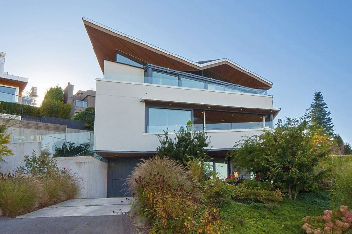 the layout of this home is unique with many different opportunities. the main floor you enter on has an open den with a fireplace and views to the garden and beyond. also featured are a large bedroom with private deck, 4 piece bath, laundry room, climate controlled wine room and access to the garage/gym. up the floating staircase, takes you to the open-concept living room, kitchen and dining spaces. each entertaining space faces either the spectacular water views or the ambient lit swimming pool area. the kitchen is top of the line – subzero, wolf and bosch appliances, modern pendant lighting and white custom cabinetry and solid stone counters. the expansive glass doors to the decks open up off the living space creating the indoor-outdoor feel. the room can also feel cozy with the beautiful modern floating fireplace and the custom millwork which hides the tv.