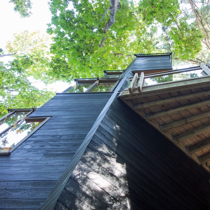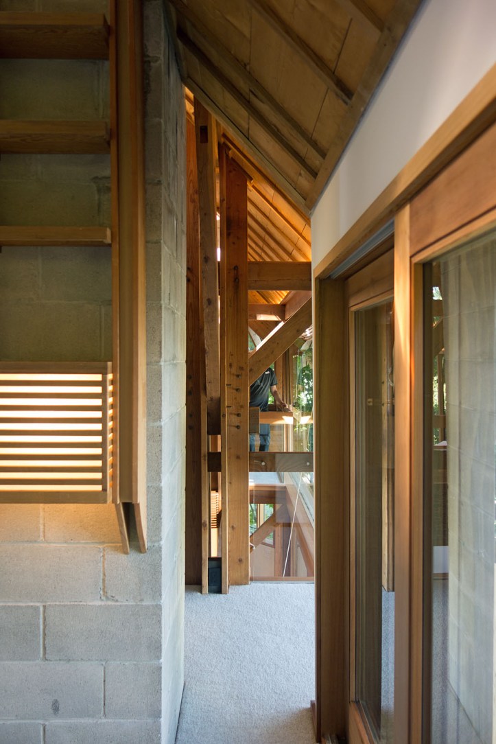 few words from the architect about the renovation : brian hemingway built it in 1977. at the time, at thompson berwick pratt, he and his mentor paul merrick were working on a few projects which explored similar design vocabularies including the macmillan bloedel forestry exhibit centre in van dusen gardens, and the canadian forces officer candidate school in cfb chilliwack. paul built his treehouse a few years earlier than brian.