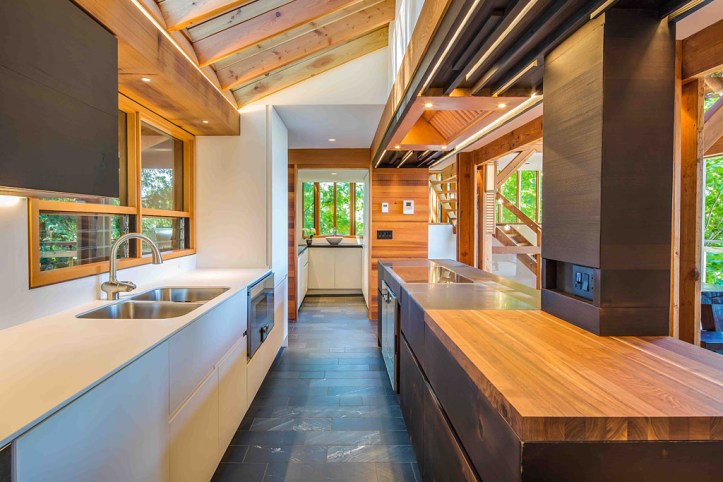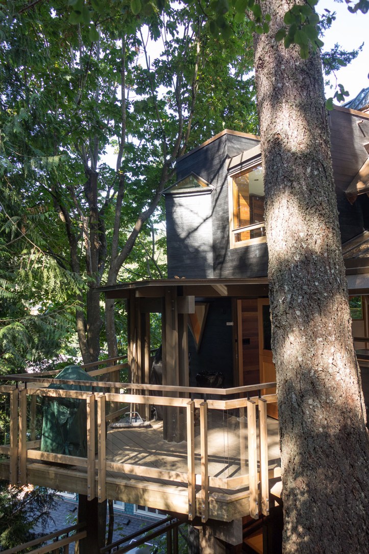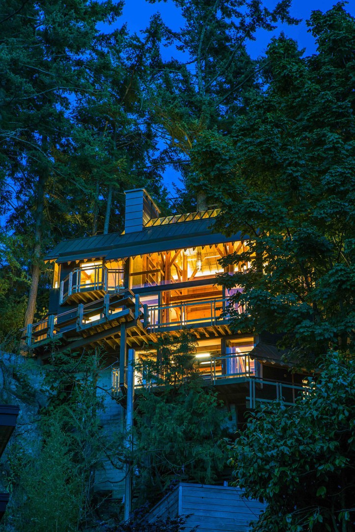 original house description : spectacular, serene and unique custom designed home by well known architect, brian hemingway, his own private residence known as the treehouse. environmentally inclusive with changes in the seasons, lights, eagles, herons, squirrels, complete ocean view of sparkling ships by day and brightly lit floats drifting by. multi level, 1890 square feet, three full bedrooms, amazing den reading area, wood burning and gas fireplaces, 2 full baths, decks, massive sliding doors to balconies that are extensions of the house to the outdoors. this home is full of detail, interest, and an amazing blend of wood, ambience and a respect for space indoors and out.