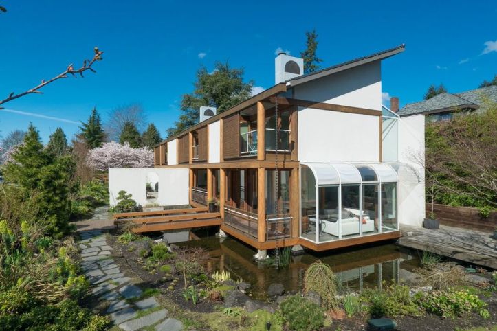 this home is a jewel on vancouver’s charm bracelet. arthur erickson was commissioned to create this property in 1982 on the 67’5 x 156’1 lot. each space on the man floor is dappled in the beautiful light reflecting in from the pond, the courtyards and strategically placed view corridors to the gardens. along a sky-lit hallway are 4 large bedrooms and 3 newly renovated luxurious bathrooms and laundry complete the upper floor. downstairs features a large play space/ guest space with an envious wine cellar and tasting area. a home to be seen. first public open sun march 4th 2-4pm