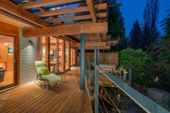 welcome to the coleman home on emerald, a delightful modernist home that exudes craftsmanship from barry griblin, renowned designer of west coast architecture. this custom renovation features everything needed for a young family who appreciates west coast modern, and the specially built room for a music producer is just the start. the house nestles into its setting: from a u-shaped entry court, through free-flowing living spaces, to layered, glass covered trellises and decks leading to the landscaped rear yard. to call emerald drive one of the most desirable streets in edgemont is an understatement-minutes walk to the village, and minutes drive to the freeway and local schools. the home has one of the grandest backyard gardens of north vancouver.