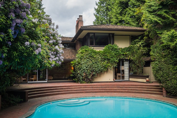 one of a kind mid-century modern home designed by renowned canadian architect ron thom on over a 1/4 of an acre (13,677 sq.ft) corner lot in desirable south granville. this is incredible opportunity to own a piece of canadian history that has been wonderfully maintained in celebration of the original design & architecture. on the main floor you’ll find an airy living room with bright glass windows over looking the expansive patio leading to the outdoor pool, a formal dining room ready for large family dinners, a spacious kitchen & a family room. make your way upstairs to the master bedroom with ensuite, 3 additional bedrooms with a shared bathroom. this private lot can accommodate the construction of a new 3 level home of approx. 8,000 sq.ft.