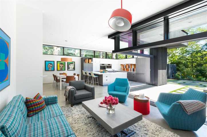 combo house – sitting on a 10,925sf corner lot in southlands, this measured architecture home is one of the most creative yet practical modern houses you’ll find in vancouver. the modern design blends seamlessly into its natural surroundings, featuring mature trees & gorgeous landscaping.the kitchen, living & dining room are surrounded by retracting windows allowing for a seamless inside/outside transition that enables the south-facing patio to become an extension of the living space. ground floor: master bedroom, complete with walk-in closet & ensuite. there are another 2 bedrooms, 2 bathrooms & large office (possible 4th bedroom) on the upper floor, along with a south-facing deck that overlooks the property. throughout the house: soaring 11-ft ceilings & handmade, colourful moroccan tiles – set against a calm synthesized palette of white walls and countertops, and black ash millwork. this home is flexible, energy efficient and easy to maintain, with every square inch utilized for comfort & beauty.
