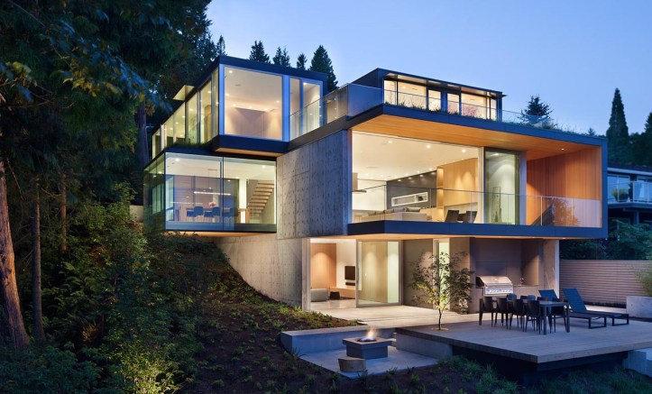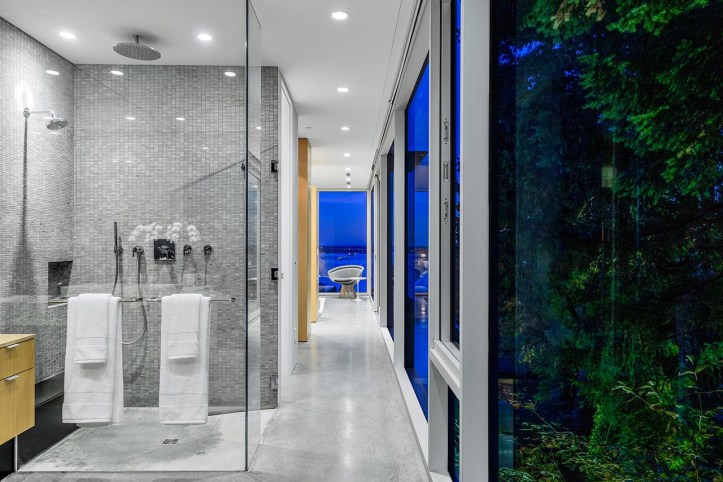 this brilliantly designed modern masterpiece by architect nigel parish and splyce design is set into a wonderful, private setting, boasting spectacular ocean views. the home offers approx 5600 square feet on three expansive levels featuring polished concrete floors, exposed concrete detail and floor to ceiling windows throughout. each level enjoys their own walk-out private terrace overlooking the beautiful landscape and water views creating and indoor outdoor lifestyle simply like no other