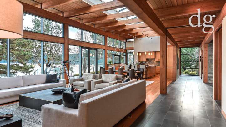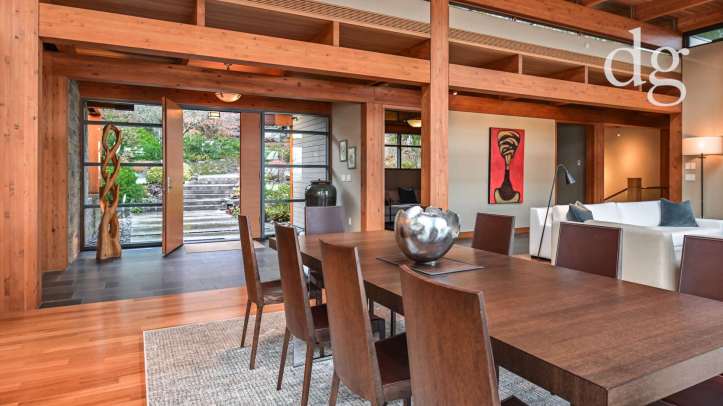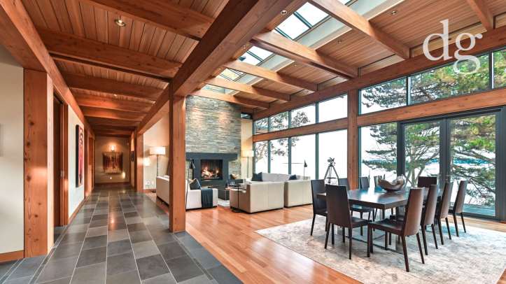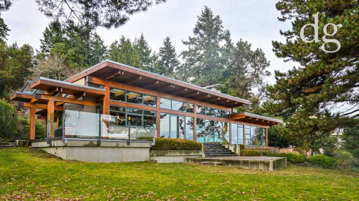 walk on waterfront luxury at its finest, nestled near the tip of stephenson point, welcome to the dawn. architecturally designed by the renowned brian hemingway, the organic modernist architecture blends in perfect harmony with the surrounding west coast landscape as floor to ceiling windows and a 50 foot skylight offers an unparalleled opportunity to revel in the brilliance of morning sun and the ever changing light. natural materials such as basalt stone, honed granite, and douglas fir deliver a warm inviting ambiance. expert craftsmanship is evident in each and every detail of this astounding work of art. offering a lifestyle like no other, imagine waking each morning to the breathtaking sunrise through the massive windows in your master suite, or spending evenings watching boats come and go from your vast sun bathed patio. the kitchen is a chef’s dream come true, outfitted with top of the line appliances and access to a convenient butler’s pantry. in the living room cozy up to the dramatic stone fireplace where the touch of a button delivers a roaring blaze. the sitting room offers a more intimate space for lounging and the main floor is complete with an office, powder room, 3 piece bath, mud/laundry rooms, all of which are equipped with custom mill-worked cabinetry and built-ins. on the lower level you will find a family room, 3 more generously sized bedrooms that enjoy unobstructed ocean views, a studio that benefits from an abundance of natural light and a fully outfitted fitness room. each and every detail of this home was designed to offer the finest experience of life on the west coast. with almost 200 feet of walk on waterfront and a foreshore lease allows for a potential dock or boathouse that may further enhance this remarkable residence.