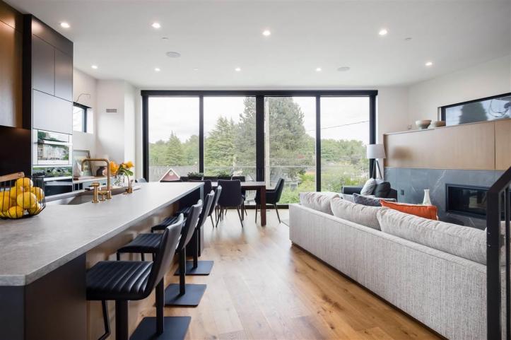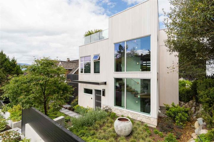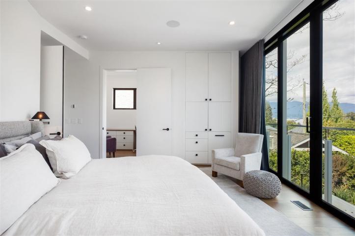 awaken to your west point grey dream home! an architectural masterpiece on the crest of locarno. modern 4 bdrm/4.5 bath home has been thoughtfully designed with flare! follow the floating staircase with colourful bocci pendants to the great room with 10 ft ceilings, feature gas f/p, wide plank flooring, chef’s kitchen with 6 burner gas range, subzero fridge, lg island & wall mounted ovens. giant sliding doors open to picturesque west coast ocean & mtn vistas. relax in the 4 dreamy bdrms with adjoining spa-like baths. perfect fam rm with guest rms, & full-sized fridge in mud room with direct access to garage. the custom elevator can take you to the fully furnished amazing roof deck with outdoor kitchen & panoramic views of locarno park, city, water & mtns.
