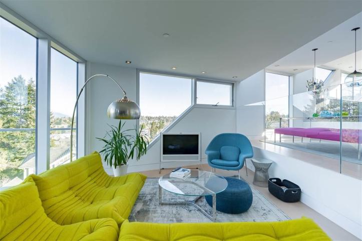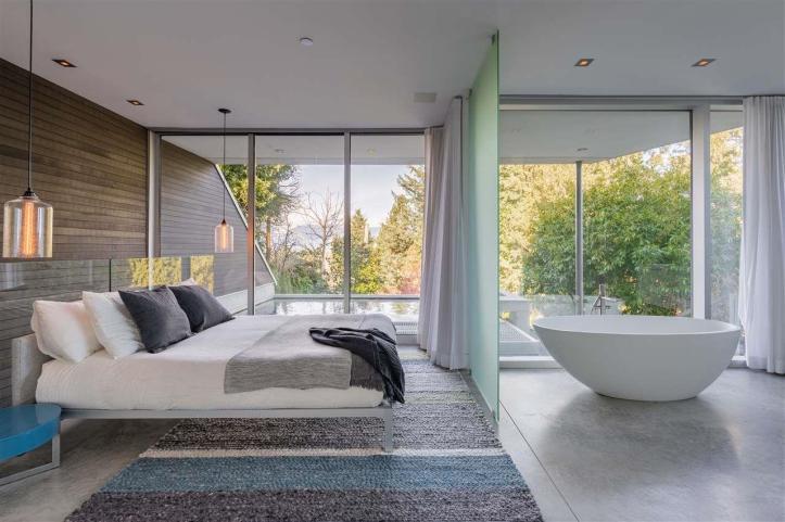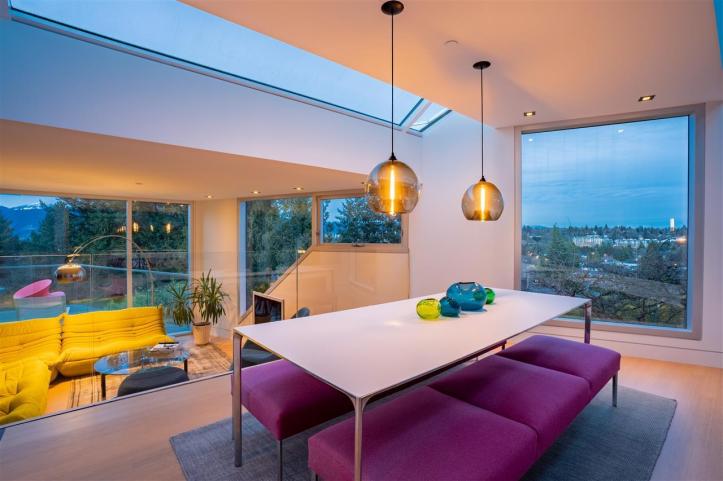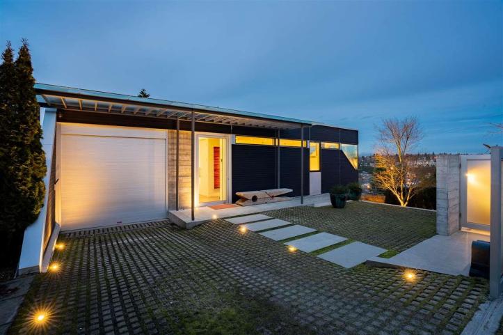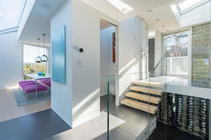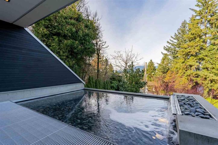 this one-of-a-kind architectural gem was originally built in 1972 and then extensively renovated in 2014 using modern construction techniques and materials such as exposed poured concrete walls, polished concrete floors, frameless triple paned windows, and horizontal cedar siding; all with a goal of staying true to the original design. the main floor is open and split into three levels cascading from the kitchen to the dining room to the living room ending on an expansive terrace – all offering views to the burrard inlet. the lower level, has three bedrooms and a den including a fabulous master suite with floor to ceiling windows overlooking a terrace and reflective pond and offering views to the north shore mountains. one final flight down is where the home office and gym can be found with sliding glass doors opening to the garden level patio with a gas fire pit. in floor glass panels, an outdoor fireplace, a custom glass 200+ bottle wine room, and a single attached garage complete this amazing home.