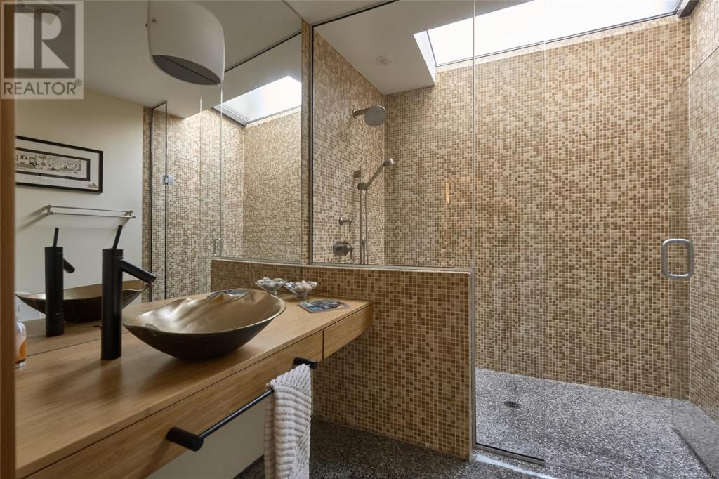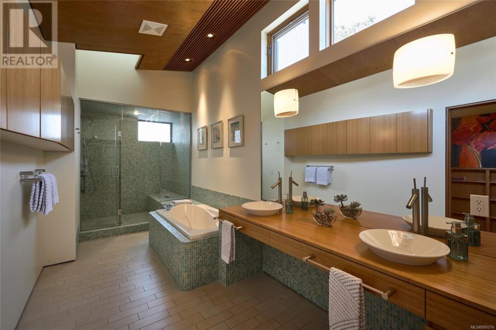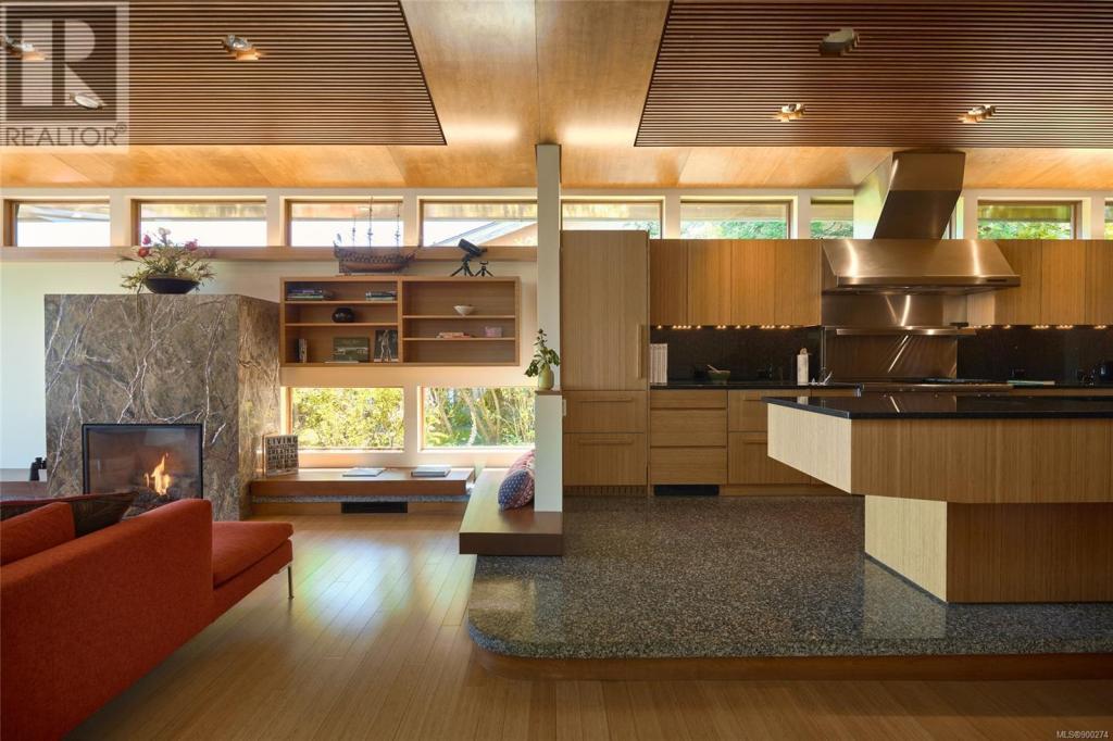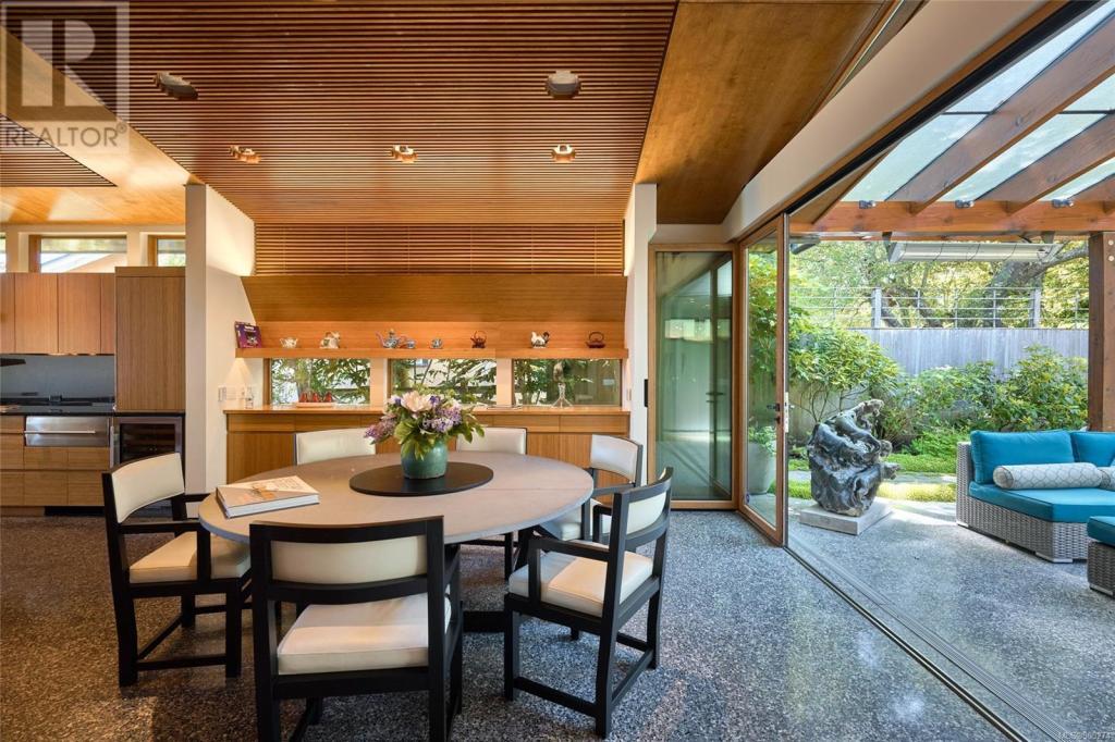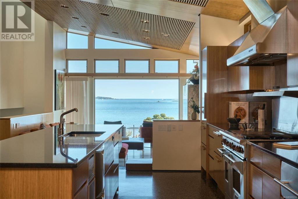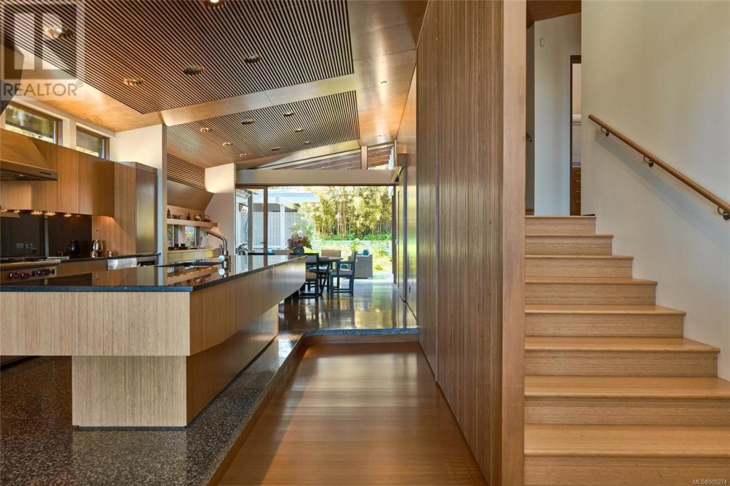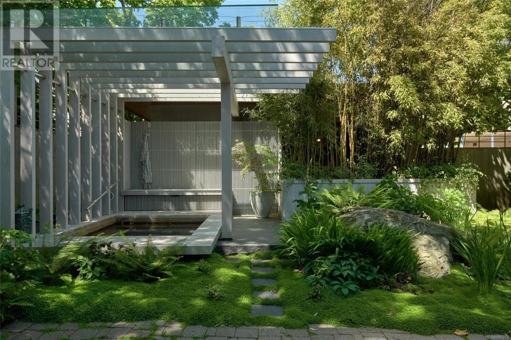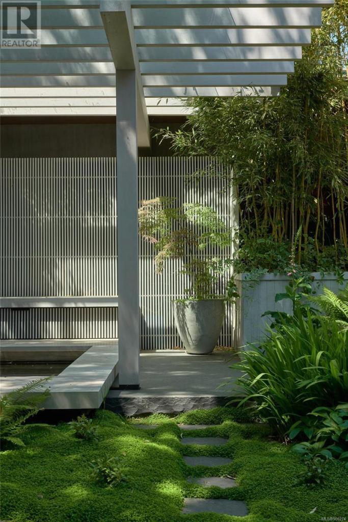 imagine being able to enjoy the wonders of an active beachfront from your secluded and luxurious esplanade house. enjoy ocean, island and mountain views overlooking your mature garden from spaces perfect for entertaining or quiet contemplation. a dramatic entry invites you into 4 terraced levels with a staircase that rises with the slope of the site. each of the 3 self-contained bedroom suites provide geographic seclusion. the award-winning kitchen is a culinary masterpiece. open, serene, and finely crafted with high ceilings of polished cedar and terrazzo flooring. a custom sauna and steam shower provide space for relaxation. in contrast to the colourful beachfront, the rear outdoor space is a japanese garden retreat, featuring an ofuro tub in a glass-roofed pavilion. the esplanade house, designed by d’ambrosio architecture, is a contemporary expression of the traditions of west-coast modernism, and a peaceful 5 minute stroll to uplands park, willows park, and estevan village.