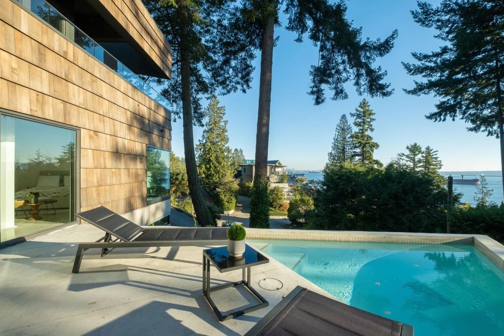 presenting sandy cove diamond, nestled on rose crescent, the most sought after street in the area, surrounded by award winning architectures. enjoy the mesmerizing panoramic ocean view throughout the house. this brand new 4,800 sf house has been built based on the previous higher far that is no longer obtainable with the newly adopted bylaws. the house is designed by the amazing d’arcy jones, and pays attention to the natural contours of the land to bring the full potential of this property to life; the eye-catching funky angles in the house were crafted to capture the best views and the triangular outdoor pool complements the design. the house has 4 ensuited bedrooms and 6 bathrooms.